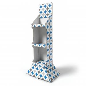 Der Sockel ist mit einem EB-Wellen Kreuz innen verstärkt, so hält der Display dem hohen Gewicht stand. Sollte das oberste Tray leer sein, müssen Sie es nur abnehmen und den Topper in das Tray darunter einstecken.Die Sockelhöhe mit 600 mm und die Topperhöhe mit 350 mm ist festgesetzt und gibt dem Display eine perfekte insgesamte Größe. Der Sockel und der Topper sind aus E-Welle. Die Trays werden aus EE-Welle produziert.