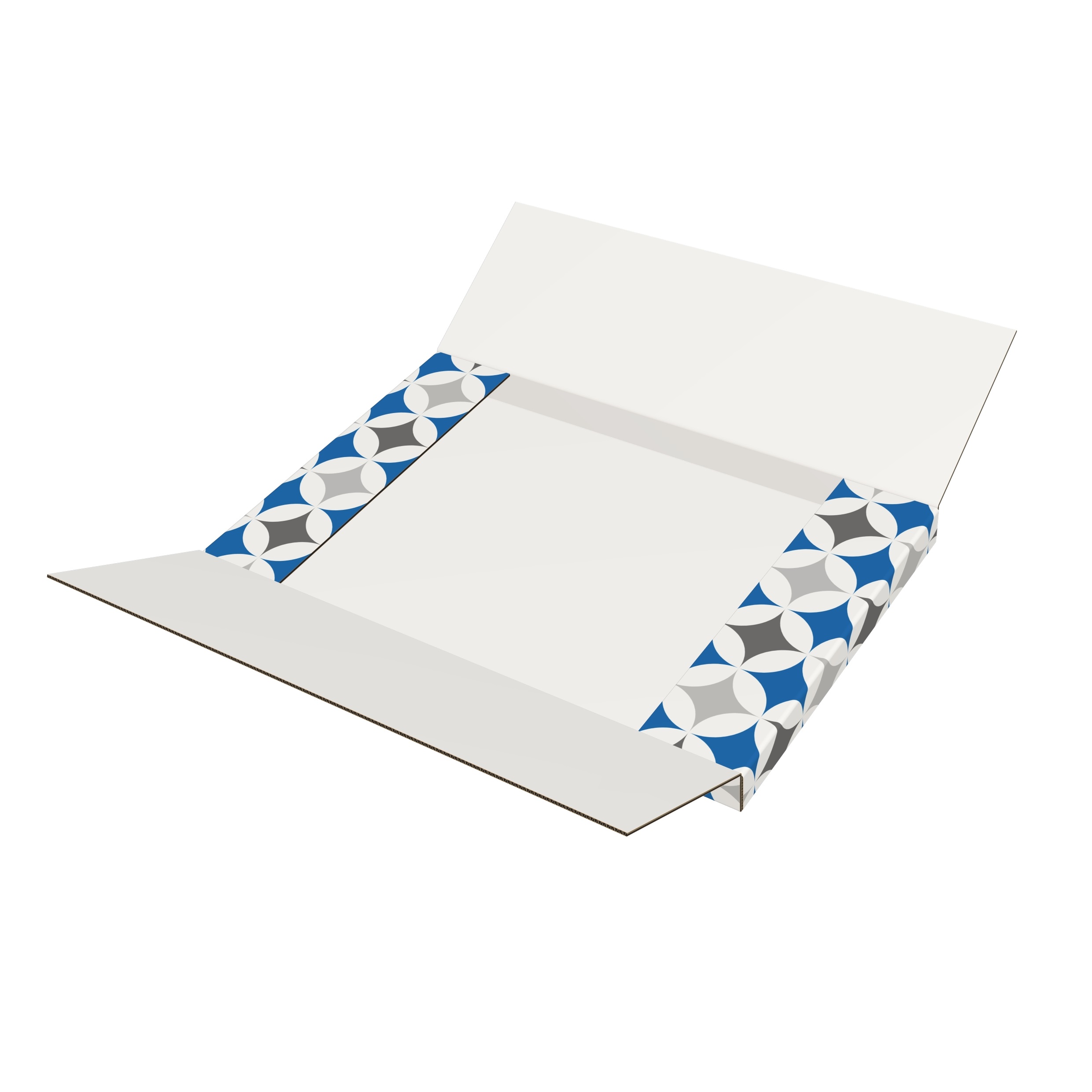 Kreuzverpackung FEFCO0401 aus E- oder EE-Welle (beidseitig weiß, bedruckt)